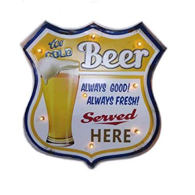 The yamerbo Beer Bar Wall Decor is a vintage-style metal sign with LED light bulbs, perfect for adding retro charm to your kitchen, restaurant, bar, or living room. It is handcrafted and designed with a painted vintage look, making it a unique and eye-catching piece of wall art. Whether you're hosting a party or simply enjoying some bar time at home, this light-up sign creates a warm and inviting atmosphere. The sign is battery-operated, so you don't have to worry about messy wires, and it's easy to hang with two keyhole slots on the back. This Beer Bar Wall Decor also makes for a great gift for industrial style enthusiasts or as a Father's day or birthday gift for dads.
