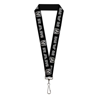 The Lanyard Ram Bold Text Rounded Ram Icon Black Gray Silvers is a stylish and functional lanyard that allows you to show off your favorite character or brand. With its 1.0-inch wide and 22-inch long design, it is made out of stretchy polyester and features a steel clip to easily detach your keys. The high-quality printing into the fabric ensures that the colors will last for years to come. Handcrafted in the USA by Buckle-Down, Inc. and officially licensed by Ram, this lanyard combines style and convenience in one.