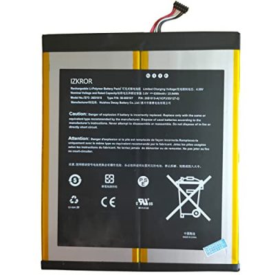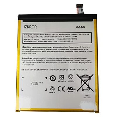 The IZKROR 26S1015 23.94Wh 6300mAh Battery Replacement is designed for the Fire HD 10.1 7th Gen V2 SL056ZE 2017 series. It comes with a wire harness length of 0.98 inch and has a voltage of 3.8V. The battery is brand new and has a capacity of 23.94Wh 6300mAh. It is compatible with the 58-000187 battery type, but not suitable for the 58-000280 battery type. The battery is certified by CE, UL, FCC, and RoHS for safety and stability. It has over 500 recharge cycles and comes with built-in circuit protection. Before purchasing, make sure to open the back cover of your laptop and confirm that the original battery type matches the picture. The IZKROR battery replacement provides a cost-effective solution for extending the battery life of your Fire HD 10.1 tablet.