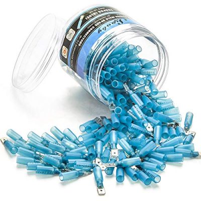 The 150 PCS Wirefy Male Spade Connectors are a reliable and convenient solution for applications that require frequent connections. These professional spade connectors are crafted from high-quality copper and feature heat shrink tubing with adhesive lining for strong crimps. The double barrels ensure secure connections, and the adhesive lining provides enhanced tensile strength. With a value pack of 150 blue heat shrink male spade connectors, this kit is suitable for use with 16-14 AWG wires. Plus, it comes with a lifetime warranty for added peace of mind. The connectors have received a customer rating of 4.6/5 based on positive reviews, showcasing their effectiveness and quality.