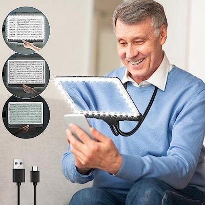 The [Rechargeable] 4X Large Ultra Bright LED Page Magnifier is a convenient and powerful tool for reading small prints and relieving eye strain. With its advanced lighting system, this magnifier provides evenly lit viewing area without glare to your eyes. The large optical grade magnifying lens offers a crystal clear viewing area and magnifies up to 400%. It features fast charging technology, allowing you to recharge the magnifier in just 2 hours with the included Micro USB cable. The lightweight and ergonomic design make it comfortable for long reading sessions. Adjust the brightness level with the dimmer wheel, reaching a peak brightness of 720 lumens. With excellent customer reviews and a rating of 4.4/5, this magnifier is a practical and efficient solution for those with low vision or reading difficulties.