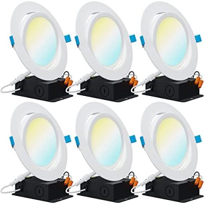 The Sunco 6 Pack Recessed LED Lights is a top rated 6-inch slim gimbal downlight with selectable CCT. It allows you to choose from five different color temperatures (2700K, 3000K, 3500K, 4000K, 5000K) to achieve your desired lighting setting. The adjustable and airtight design of the light allows you to focus the light onto specific areas, while the foam gasket ensures an airtight seal. Installation is simple, with a quick and easy setup guide provided. The light is suitable for damp locations in both home and office settings. With a 7-year warranty and backed by a reputable American brand, the Sunco 6 Pack is a quality product at an affordable price.