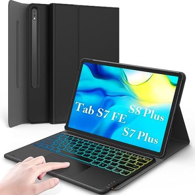 Enhance your productivity and protect your tablet with the GreenLaw Galaxy Tab S7 Fe/S8 Plus/S7 Plus Case with Keyboard. This keyboard case is exclusively designed to fit Samsung Galaxy Tab S8 Plus 12.4" 2022, Galaxy Tab S7 FE(5G) 12.4" 2021, and Galaxy Tab S7 Plus 12.4" 2020. With a 3-zone 7 color backlit keyboard, you can set your preferred hue and brightness for a visually pleasing and comfortable typing experience. The smart touchpad enables precise control and navigation, while the detachable leather case with a keyboard provides versatility for reading, working, or video-watching. The long-lasting battery life and comprehensive protection make this keyboard case a must-have for Galaxy tablet users.