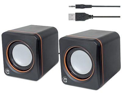 The Manhattan USB Powered Stereo Speaker System is a compact and portable audio solution for your PC, laptop, or notebook. With dimensions of less than 3 inches per side, these speakers deliver full, rich sound in a small size. They are USB powered, meaning they draw all their power through the USB connection, eliminating the need for an outlet or adapter. The 3.5mm audio plug quickly connects to most PCs and mobile devices, and the in-line volume control allows for easy adjustment. These speakers are built for travel, with a compact form and durable construction, making them a great fit for your laptop bag, briefcase, or bookbag. The Manhattan USB Powered Stereo Speaker System offers full-range stereo sound and convenience in a compact package.
