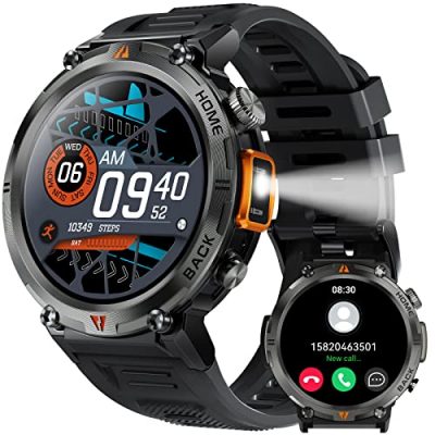 The Military Smart Watch for Men with LED Flashlight is a reliable companion for outdoor adventurers. Its rugged and waterproof design, extensive sports modes, and comprehensive health monitoring features make it suitable for fitness enthusiasts. The watch’s Bluetooth calling and smart notification capabilities provide convenience in staying connected. While it has some flaws in terms of notifications and voice assistant functionality, it offers useful additional functions like a pedometer and remote camera control. The high compatibility with iOS and Android devices is a plus. However, potential buyers should be aware of the fragility of the glass and the higher price point. Overall, it is a versatile smartwatch that caters to the needs of active individuals.