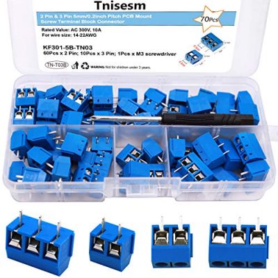 The KeeYees 60pcs 5mm Pitch 2 Pin & 3 Pin PCB Mount Screw Terminal Block Connector is a reliable option for electronics enthusiasts on a budget. It provides a secure connection for wires to circuit boards and has a tight grip on wires. The separate packaging for each connector is a convenient feature. However, users should be cautious about properly tightening the screws to prevent them from falling out. The connectors may not fit perfectly on a protoboard due to their thickness, but they work well on a breadboard. Overall, if you are looking for an affordable and decent quality option for your electronics projects, the KeeYees Screw Terminal Block Connectors are worth considering.