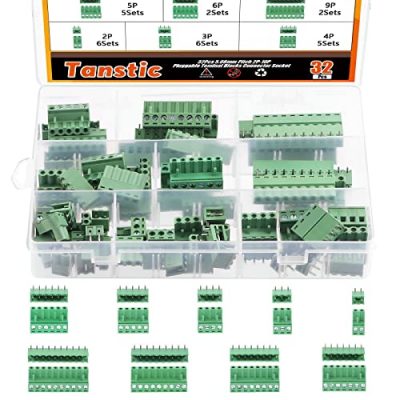 The Tanstic 32 Sets Terminal Blocks are a versatile and essential accessory for electronic equipment. These pluggable terminal block connectors are made of high-quality, durable materials including plastic housing and stainless steel pins. They are designed to be high temperature resistant, flame retardant, and have strong oxidation resistance. The package includes 32 sets of male and female connectors in 9 different pin configurations, ranging from 2 to 10 pins, ensuring that you have the right connectors for your needs. The connectors are conveniently stored in a hard storage box, making it easy to keep them organized and accessible. Installation is simple, with screws that can be loosened and tightened to fix the wires securely. These terminal blocks have a wide range of applications in various electronic equipment and systems, including communication devices, computers, household appliances, and more.