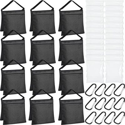 The 12 Packs Photography Weight Bags Set is an essential accessory for photographers and videographers. Made of quality oxford cloth, these weight bags are wear-resistant, sturdy, and have good sunscreen and waterproof performance. The set includes 12 sand bags with aluminum key chains and clear film bags, providing ample quantity for various purposes. Each sandbag has two pockets, offering large capacity and easy carrying. These bags can be attached to light stands, tripods, booms, or camping tents to ensure stability in windy conditions or on uneven ground. The lightweight design allows for convenient transportation, and the bags can be filled with sand, gravel, rocks, or nuts. However, it is important to note that the sandbags are empty and do not hold water. With its versatility and durability, this weight bag set is a valuable addition to any photography or videography equipment.