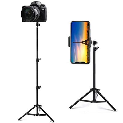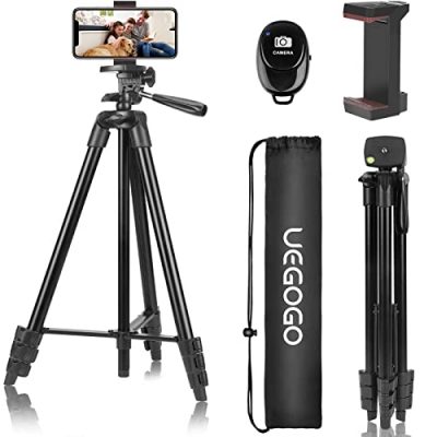 The UEGOGO Tripod is a versatile and lightweight solution for all your video recording, selfie, live streaming, and vlogging needs. With a height that varies from 17.7 inches to 57 inches and a maximum height of 60 inches with the phone holder, this tripod can accommodate a wide range of devices including DSLR cameras, action cameras, smartphones, and more. It features a 3-way pan head with a level bubble for smooth and adjustable angles, a universal phone clip that fits most smartphones, and a remote control for taking selfies and group photos remotely. The tripod also comes with a carry bag for easy transportation and storage. Overall, the UEGOGO Tripod provides great value for its price, making it the best phone tripod stand for your needs.
