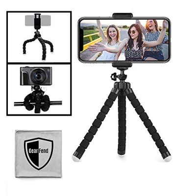 The GearFend 6.5” Flexible Universal Tripod is a lightweight and flexible tripod that is perfect for travelers. It allows you to take stable and beautiful indoor or outdoor photos and videos from any spot. The tripod features a ball head that rotates 360°, making it easy to adjust the mount to get the perfect angle. The bendable metal legs have a soft foamy outer layer, providing a secure grip on stick-like objects. It is compatible with all smartphones and comes with a GearFend Microfiber cleaning cloth that works well on smartphones, eyeglasses, camera lenses, and more. Overall, the GearFend 6.5” Flexible Universal Tripod is a versatile and convenient accessory for mobile photography enthusiasts.