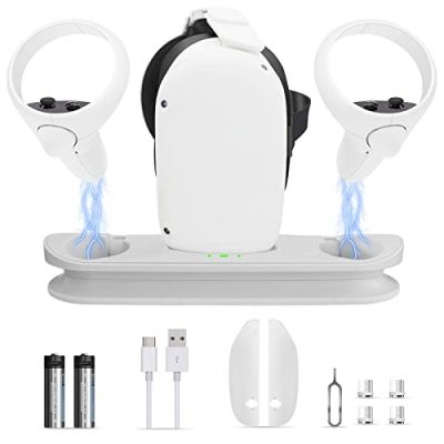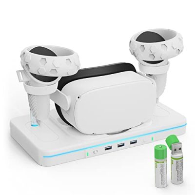 The VR Charging Station for Oculus Quest 2/Meta Quest 2 by CODOGOY is a practical solution for charging and storing your VR headset. Despite some limitations, such as compatibility issues with certain head straps and the absence of a charging plug, this docking station offers fast charging, versatile connectivity, and a visually appealing design with RGB lighting effects. The inclusion of rechargeable batteries and the ability to charge other devices through the USB ports make it a convenient option. Overall, it serves its purpose well and provides an organized and accessible setup for your VR experience.