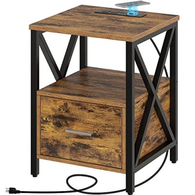 The Rolanstar End Table with Wireless Charging Station is a versatile and stylish piece of furniture that combines functionality with farmhouse design. With a wireless charger, 2 standard plug outlets, and 2 USB ports, this side table provides all the charging options you need for your devices. The open shelves and bottom drawer offer ample storage space to keep your belongings organized. Made with textured particle board and a metal frame, this table is sturdy and stable. Its adjustable feet ensure easy leveling on uneven floors and protect your floors from scratches. With easy and fast assembly, you can have this table set up within 30 minutes. Overall, the Rolanstar End Table with Wireless Charging Station is a practical and attractive addition to any living room or bedroom.