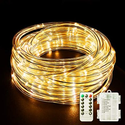 The LED Rope Lights Battery Operated 8 Modes Timer Fairy String Lights with Remote is a versatile and convenient lighting solution that can enhance any indoor or outdoor space. With its remote-controlled settings and timer function, you can easily customize the lighting effects and create the perfect ambiance. The waterproof design ensures that you can use these lights even in rainy weather, providing a reliable and durable solution for all your lighting needs. While some customers experienced issues with waterproofing and defective lights, overall, this product offers great value for its price. Whether you’re decorating for Christmas, a party, or simply want to add a touch of warmth to your space, these rope lights are a fantastic choice.
