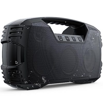 The DBSOARS Bluetooth Speaker is a portable wireless speaker with powerful superior sound, IPX7 waterproof rating, and an impressive playtime of up to 32 hours. It features a rugged design with a built-in handle for easy carrying and is perfect for outdoor adventures. With the ability to wirelessly pair two speakers together for an immersive sound experience, this speaker is great for parties, gatherings, and outdoor activities. It also doubles as a power bank, allowing you to charge your phone in case of an emergency. With its high customer rating of 4.8/5, this Bluetooth speaker offers excellent sound quality and durability for an affordable price.