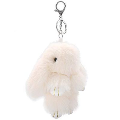 The BEGOOD Faux Rabbit Fur Keychain Fluffy Pom Pom Bunny Keyring is a cute and stylish accessory that can be used to decorate your bags, purses, cell phones, or even your car. Made with high-quality artificial fur, microfiber leather, and alloy metal keychain, this keyring is not only fashionable but also durable. Measuring 5.5*3.5in, the fluffy bunny pompom adds a touch of charm wherever it is used. It also makes for a great gift for yourself, friends, or family. Before using, make sure to fluff the rabbit fur using a hairdryer. The keychain is available in beige color and one size. With its soft and fluffy texture, the BEGOOD Faux Rabbit Fur Keychain is sure to bring a smile to your face.