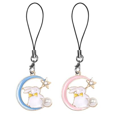 Enhance the appearance of your mobile phone with the HOOTNEE 2 Pcs Key Chain Mobile Phone Chain. This adorable keychain charm features a moon star rabbit design that can be easily attached to your phone or bag. It can also be used as a keychain, making it versatile and stylish. The package includes two pieces of kawaii bunny charms in different colors, allowing you to match them with various items. The craftsmanship is exquisite, ensuring durability and beauty. With its unique and creative design, this rabbit pendant phone chain will add a touch of delicacy to your phone. Upgrade your mobile phone decoration with this fashionable and practical accessory.