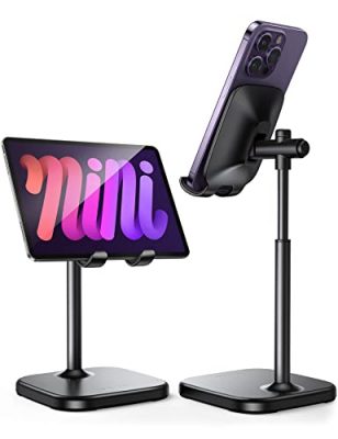 The JIUCAIE 2Pack Cell Phone Stand offers a convenient and practical solution for hands-free use of your smartphone, tablet, or e-reader. Its universal compatibility and adjustable design make it versatile and suitable for various devices. The sturdy aluminum construction ensures durability, and the non-slip rubber pads provide added protection. While it may not be suitable for heavier smartphones without additional support, it offers a lightweight and portable solution for everyday use. With two stands included in the package, it’s ideal for both home and office. Whether you’re watching videos, playing games, or making phone calls, this phone holder delivers a comfortable and ergonomic viewing experience.