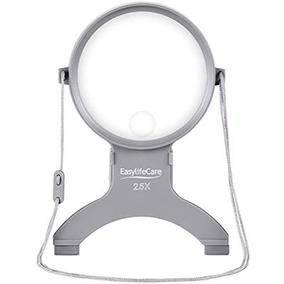 The EasyLifeCare Hands Free Chest Rest LED Magnifier is a portable visual aid designed for individuals with low vision or visual impairments. It features a large field of view with high-quality magnification for reading small prints and enhancing visibility. The magnifier is equipped with a bright LED bulb that provides illumination for clear viewing in low-light conditions. With its neck wear design, users can enjoy hands-free reading and crafting, making it ideal for activities like embroidery, needlepoint, and jewelry design. The magnifier's anti-reflective lens ensures clear and even-toned visuals without color distortions. Additionally, EasyLifeCare offers a 30-day return policy and 24-month seller guarantee. Although the magnifier has its advantages, it also has some drawbacks like mediocre magnifier quality, limited magnification power, and less-than-ideal lighting. Overall, the EasyLifeCare Hands Free Chest Rest LED Magnifier is a convenient tool for individuals with visual challenges, but it may not meet all expectations.