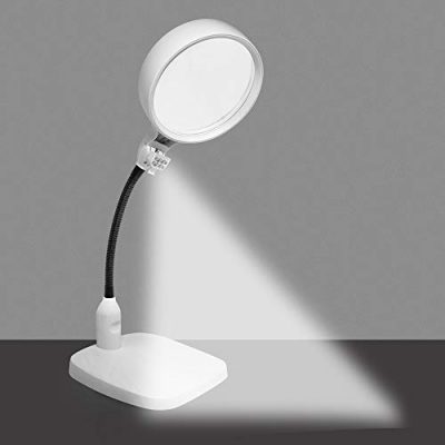 The 8X Lighted Desktop Magnifier is a heavy-duty stand with a large 5.7-inch lens, designed to assist in various tasks. The magnifier offers 8X magnification with a focal range of up to 140mm, ensuring clear and detailed visibility. It comes with 6 adjustable LED lights to provide optimal illumination where needed. The lamp uses energy-efficient LEDs that have a long lifespan of 15-20 years. The metal gooseneck is adjustable and rotatable, allowing for easy positioning of the lens and lights. The weighted base provides stability and prevents tipping. This multifunctional magnifier is suitable for reading, sewing, crafts, soldering, and jewelry design. Overall, it is a useful tool for those with low vision or needing precision in their work.