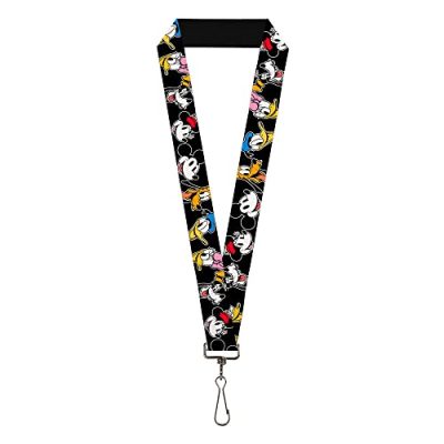 The Buckle-Down womens Lanyard – 1.0" Classic Disney Character Faces Black Key Chain is a stylish and functional accessory. Made out of stretchy nylon and featuring a stainless steel clip, it allows you to easily detach your keys. With its multicolored Disney character faces, you can proudly show off your favorite characters or brands. The lanyard is 1.0 inch wide and has a standard length, making it suitable for everyday use. This officially licensed Disney product is perfect for Disney fans and collectors alike.