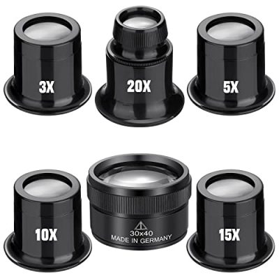The 5 Pcs Jewelers Loupe Portable Monocular Magnifier Magnifying Glass is a versatile and reliable tool for examining and viewing intricate details. Made with a double layer glass lens and lightweight thermoplastic body, these magnifiers provide high magnification while being durable and portable. With 5 different magnification levels ranging from 5X to 30 x 36 mm, you can choose the right level for your needs. Whether you're examining jewelry, gemstones, coins, or other small items, these magnifying glasses will help you see clearly and carefully. They are small enough to carry in your pocket or bag, allowing you to observe anytime, anywhere. Share these magnifiers with others who have a passion for experimenting, collecting jewelry and antiques, or coin collecting. Overall, these jewelers loupes are a great tool for various purposes and offer good value for the price.