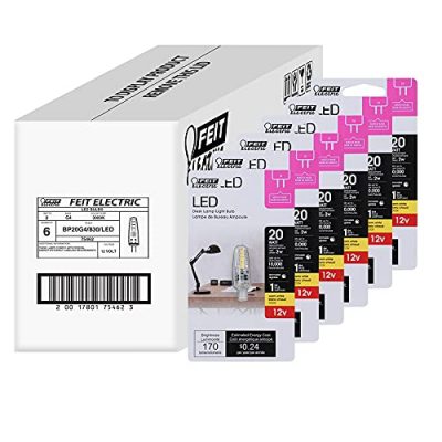 Upgrade your specialty lighting with the Feit Electric BP20G4/830/LED/6 20-Watt EQ DM G4 Base Capsule Specialty LED Light Bulb. These dimmable LED bulbs offer warm white lighting at a CCT of 3000 Kelvin, creating a cozy and inviting atmosphere. With a 20-watt equivalent, these energy-saving bulbs only use 2 watts and produce 170 lumens. They have a long lifespan of up to 10,000 hours, reducing the hassle of replacing them frequently. The bulbs are safe to use in rooms with artwork and photographs as they emit no ultraviolet light. Additionally, they are 100% mercury-free. Feit Electric is a trusted brand with over 40 years of experience in lighting innovation. Upgrade your lighting to the latest technology with these durable LED bulbs.