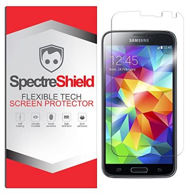 The Spectre Shield Screen Protector offers nearly invisible protection for your Samsung Galaxy S5. Designed to be compatible with most cases, this flexible TPU film provides full coverage and defends against scratches, wear, and dirt. The high definition transparency ensures vibrant colors and sharpness for your phone screen. Please note that this is a wet install film, not a tempered glass screen protector. The package includes a Lifetime Replacements voucher for film replacements. With its precise laser-cut fitment and durable material, this screen protector is a must-have accessory for Samsung Galaxy S5 users.