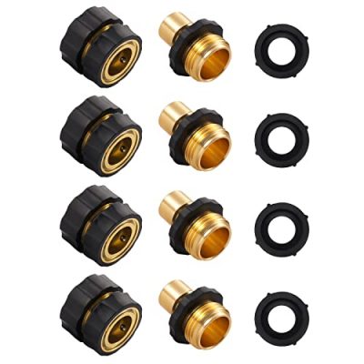 The AnnYun Quick Connect Garden Hose Fittings is a premium set of 3/4 inch garden hose quick connectors. It includes 4 male and 4 female quick connectors, along with 4 extra garden hose rubber washers for replacements. These aluminum connectors are designed for easy connecting and disconnecting, with rubberized grips for convenience. They are compatible with all 3/4 inch standard garden hoses and watering devices. The connectors are lightweight and durable, built to last. With a 4.6/5 customer rating, they have received positive reviews for their convenience and efficiency. However, some users have experienced leakage issues. Overall, the AnnYun Quick Connect Garden Hose Fittings provide a time-saving solution for connecting and disconnecting garden hoses.
