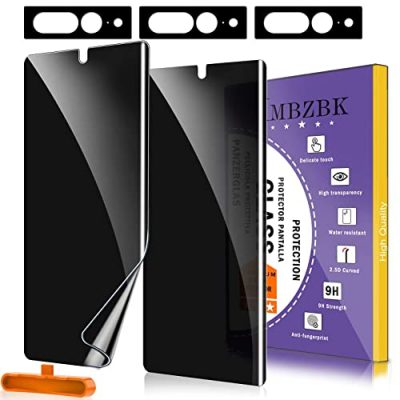 The IMBZBK [2+3 Pack for Google Pixel 7 Pro Privacy Screen Protector [Not Glass] Accessories 2 pack Flexible Privacy Screen, 3 pack tempered glass Camera Lens Protector Case Friendly is a comprehensive screen protection kit specifically designed for Google Pixel 7 Pro. The privacy screen protector uses Microlourver Optical Technology to ensure that the screen is only visible to the person directly in front of it, protecting your personal information in public places. Made of premium thermoplastic polyurethane (TPU), the screen protector provides maximum protection against scratches without interfering with the Face ID feature. The kit also includes a camera lens protector made of 9H hardness tempered glass to protect the camera from scratches. Despite some installation challenges, the overall effectiveness and privacy features make this kit a good choice for Google Pixel 7 Pro users.