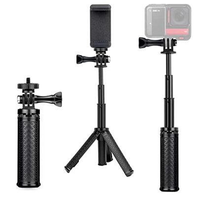 The UURig Extendable Selfie Stick Tripod is a versatile accessory designed for GoPro, DJI Osmo Action, and Insta 360 One R action cameras. It features an integrated design that combines a selfie stick and tripod, allowing for easy switching between modes. The stick can extend up to 50.7 inches and has a non-slip handle for better grip. With its durable construction and rubber base, this selfie stick tripod offers excellent stability. It is also waterproof, making it suitable for underwater use. Compatible with various action cameras, it is perfect for group photos, parties, travel, sports, and more. Despite some concerns about durability and weight, it provides good value for its price.
