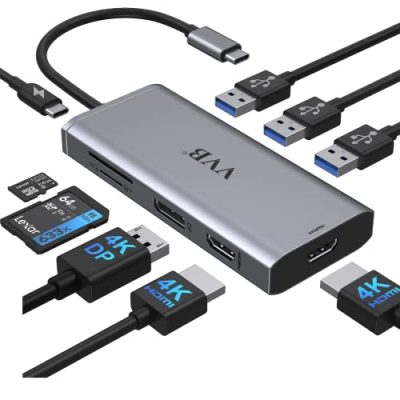 The USB C Docking Station Dual Monitor HDMI is a versatile multiport adapter that offers a wide range of features and connectivity options. With dual HDMI and triple Displayport support, users can easily achieve dual or triple monitor displays, enhancing productivity and efficiency. The docking station also provides high-speed data transfer, a gigabit Ethernet port for stable wired connection, and a 3.5mm audio and mic port. Additionally, the USB C hub features a card reader and supports power charging up to 100W. While it may get hot during extended use and has limited USB C functionality for some devices, this docking station is overall a reliable and convenient solution for expanding connectivity options.