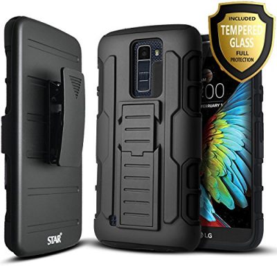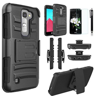 Enhance the safety and style of your LG Aristo 4 Plus/ Tribute Royal X320/ Escape Plus/ Journey LTE L322DL/ K30 2019/ Arena 2/X2 2019/ Prime 2 with this Phone Case. Designed with a hard hybrid construction and a tempered glass screen protector, this case offers the perfect blend of durability and elegance. The rugged back cover provides reliable protection for your camera and screen with its raised edges. Additionally, the built-in kickstand allows for comfortable hands-free viewing. This product also includes a free tempered glass screen protector. Satisfaction is guaranteed with our after-sales service, offering various solutions to address specific problems. Please note that this case is not compatible with other devices.
