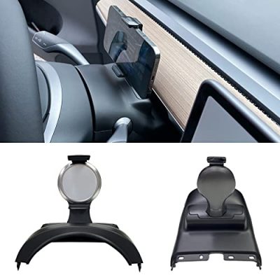 The Tesla Model Y/3 Wireless Phone Charger is a 15W fast charging station designed for all year Model 3 and Model Y. It comes with a custom mount specifically designed to fit on top of the steering position, allowing for easy accessibility. The charger supports wireless charging for iPhone, Samsung Galaxy, Huawei, LG, and other smartphones. With a strong spring-loaded grip, it securely holds your phone in place while driving. The charger is conveniently placed behind the steering wheel, providing full visibility without distracting the driver. It is also easy to view and reach, making it ideal for using sat-nav or answering calls without impeding vision. In case of any questions or assistance, the seller offers reliable customer support via Amazon message.