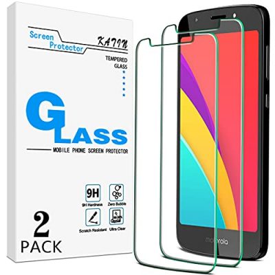 The KATIN [2-Pack] Screen Protector is specially designed for the Moto E5 Play / Moto E Play (5th Gen). It offers a perfect fit and protects against scratches and collisions. The precise laser cutting and polishing technology ensures high-definition, screen touch sensitivity. The screen protector is made of AF Explosion-Proof PET and other heat-treated materials, providing excellent durability and scratch-resistance. It also features an oleophobic coating to reduce fingerprints. With its automatic adsorption function, the screen protector can be quickly and easily installed without any bubbles. The package includes 1x retail packing box, 2x tempered glass screen protector, 2x wet wipes / 2x dry wipes, 2x dust removal stickers, and a lifetime warranty card. KATIN is committed to providing high-quality service and offers a lifetime warranty. Overall, the KATIN Screen Protector is a reliable and easy-to-install option for protecting your Moto E5 Play.