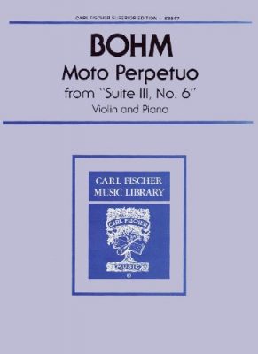 MOTO PERPETUO, FROM ‘SUITE III, NO. 6’ VIOLON-LIVRE +PARTITION is a sheet music book that features the composition ‘Moto Perpetuo’ by Bohm. The book is published by Carl Fischer and includes the violin insert and piano accompaniment. The dimensions of the book are 9.00Lx0.02Wx12.00H. It is suitable for violinists who want to practice and perform Moto Perpetuo with a piano accompaniment. The book is designed to provide the necessary sheet music for the violin and piano parts of the composition.