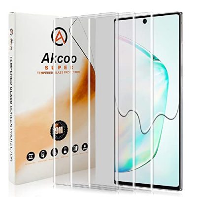 The [3 Pack]Galaxy Note 10 Plus Screen Protector by Akcoo is a high-quality tempered glass film designed specifically for the Samsung Galaxy Note 10 Plus. With full adhesive technology and a 3D curved design, this screen protector provides a seamless fit and excellent touch sensitivity. It is also compatible with the ultrasonic fingerprint reader and features an anti-scratch and anti-fingerprint coating. The package includes all the necessary components for installation, and the product comes with a free replacement/refund warranty. The color is transparent, and the dimensions are 7.28Lx6.10Wx0.50H. Customers have rated this product 3.9 out of 5 stars.