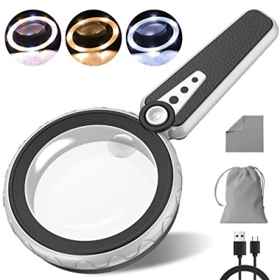 The Magnifying Glass with Light-6X 10X 12 LED Handheld Illuminated Lighted Magnifying Glasses is a highly useful tool for anyone who needs magnification for close work or reading. With its large lens, customizable lighting, and rechargeable feature, it provides convenience and comfort. The only drawbacks are the potentially useless 10X magnification window, inadequate explanation of features in the manual, and lack of a USB adapter. Overall, this magnifying glass offers great value for its price and is recommended for individuals with low vision or those who require magnification for various activities.