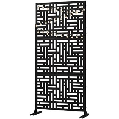 The NeuType Metal Privacy Screen is an outdoor decorative privacy screen that adds style and functionality to your patio, garden, balcony, porch, or any outdoor space. Made of durable 2mm galvanized steel coated with a scratch-resistant powder, this privacy screen is built to last. It features a unique modern pattern created by an experienced design team, providing both privacy and a visually appealing look. With dimensions of 35.4 inches in length and 72 inches in height, it is suitable for any outdoor setting. The screen is easy to install and comes with all necessary hardware. It not only blocks unwanted wind and sunlight but also serves as a beautiful work of art. Overall, it is a great addition to enhance the aesthetics of your outdoor area while maintaining privacy.