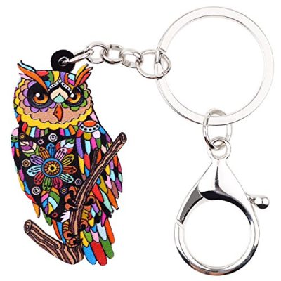 The BONSNY Patterned Acrylic Chain Owl Key Chains is a charming and versatile accessory for women. With its multicoloured design and cute owl pendant, it can be used as a car key charm, purse pendant, handbag decoration, or phone case accessory. It comes with a BONSNY pouch, making it an ideal gift for loved ones on special occasions like anniversaries, birthdays, Valentine's Day, or Christmas. The key chain has a lightweight of 15g and features a key ring diameter of 22MM. The owl pendant has a size of approximately 2.32" tall and 1.22" width. Customers have praised its cute appearance and high-quality craftsmanship. However, one reviewer mentioned that it fell off their granddaughter's backpack after a few days.