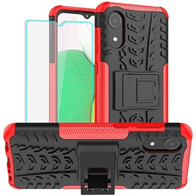 Upgrade the protection for your Samsung Galaxy A03 Core with this shockproof phone cover featuring a built-in metal ring kickstand. The dual layers of shockproof TPU and solid PC provide double protection against accidental drops, dust, and scratches. The case also includes a tempered glass screen protector. Precise cutouts ensure easy access to all features, while the built-in kickstand offers a better viewing experience. The kickstand is also compatible with car mount holders. With its durable construction and military-grade protection, this phone case can withstand heavy impact and survive a 6-foot drop test. The red color adds a vibrant touch to your phone, making it stand out from the crowd.