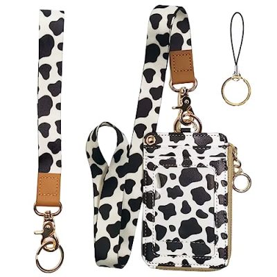 The Cute Cow Badge Holder for Women is a versatile and stylish accessory that combines a badge holder with a wallet. It features five badge holders for various cards and a side zipper pocket for cash and coins. The card holder is made of PU leather, while the lanyard is made of polyester webbing, ensuring durability. The design includes a round zipper head and an extended lanyard loop for easy use. It is perfect for women and can be used as a gift for various occasions. The Cow Print color adds a touch of uniqueness to the badge holder. The product has received a customer rating of 4.6 out of 5.