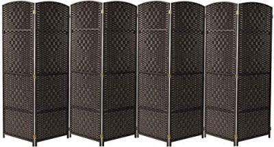 The Sorbus Room Divider Privacy Screen is a versatile and stylish solution for dividing rooms, creating privacy, and adding intrigue to your living space. This 8-panel partition style screen is perfect for dressing privacy, creating porches or patio privacy, and dividing sleeping areas for guests. It can be used in various settings such as studio apartments, bedrooms, kids' rooms, sunrooms, and more. The screen features a diamond weave pattern in espresso, adding a touch of modern and traditional style. It is made of Russian camphor pine and paper rope. The foldable panels with 2-way hinges allow for easy arrangement and storage. Overall, the Sorbus Room Divider Privacy Screen is a functional and decorative room divider that enhances the aesthetics and functionality of any space.