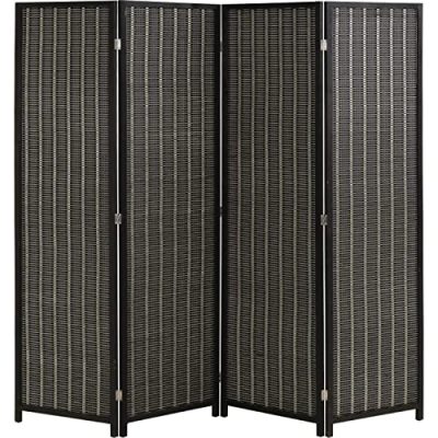 The Room Dividers and Folding Privacy Screens 4 Panel 6 ft Foldable Portable Room Separating Divider is a versatile and stylish solution for dividing different areas in your space. Made with handwork wood mesh woven design, this black room divider not only adds privacy but also enhances the modern design of your room. The flexible panel allows you to adjust it to the construction of the room, and you can easily fold it up for storage. With its high-quality and durable construction, it can last for over 10 years. The humanized dimension design ensures it fits well with most people. This lightweight and easy-to-move divider is suitable for various applications, including living rooms, bedrooms, offices, and more. Overall, it provides a great value for its price.