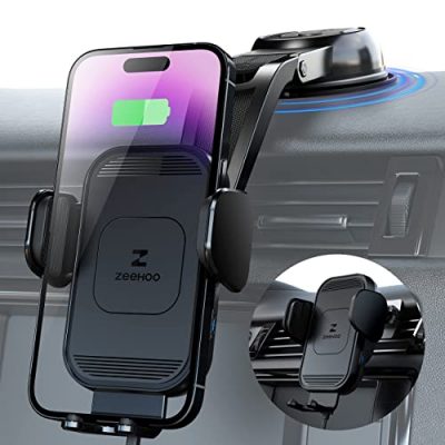 The [Upgraded Version] ZeeHoo Wireless Car Charger is a fast charging auto-clamping car mount that provides convenient and secure phone holding and charging while on the road. With its automatic sensor design, you can easily place your phone inside the holder and the clamps will close and catch your phone firmly. The charger supports fast wireless charging up to 15W, making it compatible with various smartphones including iPhone and Samsung Galaxy. It features a built-in super capacitor that allows you to release your phone even when the car is shut off. The strong suction cup and adjustable viewing angles ensure optimal visibility and ease of use. This complete package includes the wireless car charger, strong suction cup mount, and dashboard mounting disk, among others.