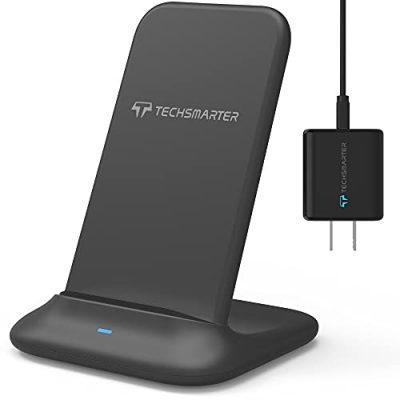 The Techsmarter 10W Fast Wireless Charger Stand Dock is a versatile wireless charger that offers high-speed charging for your wireless charging smartphone. With universal compatibility, it works with various iPhone models, including the latest iPhone 15, as well as Samsung devices like the S23, S22, and S21. The charger also supports LG ThinQ models and Airpods 2. It includes an 18W USB wall charger for easy setup. You can charge your device in landscape orientation for watching videos or in portrait mode for messaging and facial recognition. The wireless charger is case friendly and features advanced safety features, a premium build quality, LED indicator, and a non-slip design. It comes with a one-year warranty and friendly customer service.