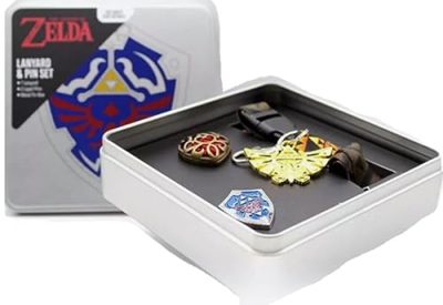 The BIOWORLD Zelda Gaming Collectible 3 Piece Tin Box Gift Set is a must-have for any fan of The Legend of Zelda. This set includes a Hylian Shield Collectors Tin Case, a Life Heart Container Pin, a Hylian Shield Pin, and a Gold Hylian Crest Reversible Pattern Lanyard. The pins feature great detail and vibrant colors, making them perfect for decorating hats, lanyards, or jackets. The lanyard is double-sided, with one side featuring the Zelda Hyrule emblem and the other side featuring the Tri-Force emblem pattern. It also has a detachable clasp, making it versatile for use with keychains, cell phones, cameras, ID badges, and more. The tin box measures 5 x 5 x 1.5 inches and features Link's shield on the front. It can be used to hold the three items or as a trinket box or game room decoration. This officially licensed set from BIOWORLD is of great quality and makes an excellent gift for any Zelda or Link fan.