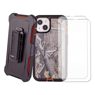 The WallSkiN Case for iPhone 14 / iPhone 13 offers superior protection with its 3-layered design made of hard polycarbonate exterior and soft silicone interior. It comes with 2 screen protectors to prevent any damage to your screens. This heavy-duty case is perfect for professionals working in tough environments, with its non-slip texture and raised edge design for screen and camera protection. It has a precise fit with easy access to all buttons and ports. The case also includes a belt clip holster that rotates 360 degrees and can be used as a kickstand. It's a great gift idea and available in a camouflage color. Overall, it provides military-grade drop protection for your iPhone 14 / iPhone 13.