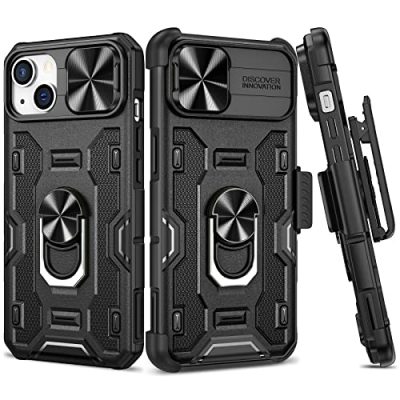 The VEGO Case for iPhone 13 & iPhone 14 offers military-grade protection with a slide camera cover, 360° rotatable ring kickstand, and a detachable belt clip holster. It is compatible with iPhone 13 and iPhone 14 models and comes in midnight black color. The slidable camera lens cover protects the camera from scratches and cracks, while the 360° rotatable ring kickstand allows for hands-free viewing and can be attached to a magnetic car mount. The detachable belt clip holster securely attaches to your belt and can be rotated 360 degrees to use as a kickstand. The case also offers excellent drop protection with shock absorbing corner protection and a raised screen lip. However, it does not support MagSafe and other wireless charging methods.