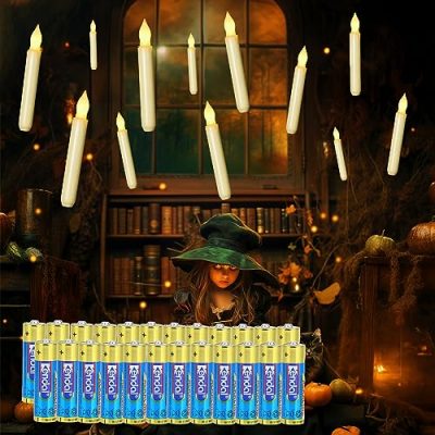 The Homemory 12 PCS Flameless LED Taper Candles are a great alternative to traditional candles. These battery-operated candles emit a warm and flickering yellow light, creating a cozy atmosphere. The set comes with 24 durable batteries that last up to 800 hours, making it an economical choice. The candles are designed to be safe, with no smoke, flame, or heat. They are versatile and can be used for various occasions like dinner parties, weddings, or as Christmas and Halloween decorations. The candles are thoroughly tested for quality control. While they don't have a switch or remote, they are easy to turn on and off by twisting the top. Overall, customers have found them to be beautiful, realistic, and perfect for creating a festive ambiance.