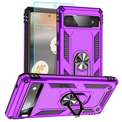 The Google Pixel 6a Phone Case offers perfect protection for your device, with military-grade drop-tested design and air-cushion technology. Its unique edge TPU combined with built-in PC guards against drops, scratches, and bumps. The slim design provides all-around protection for your Google Pixel 6a. The case features a rotable kickstand that can rotate 360°, allowing you to watch videos hands-free with comfort and stability. It also includes a built-in metal magnetic sheet for stable adsorption to a magnetic car mount holder. The Google Pixel 6a Case is compatible with the Google Pixel 6a and comes with a HD screen protector. It has precise cutouts for easy access to all features and is available in a stylish purple color.